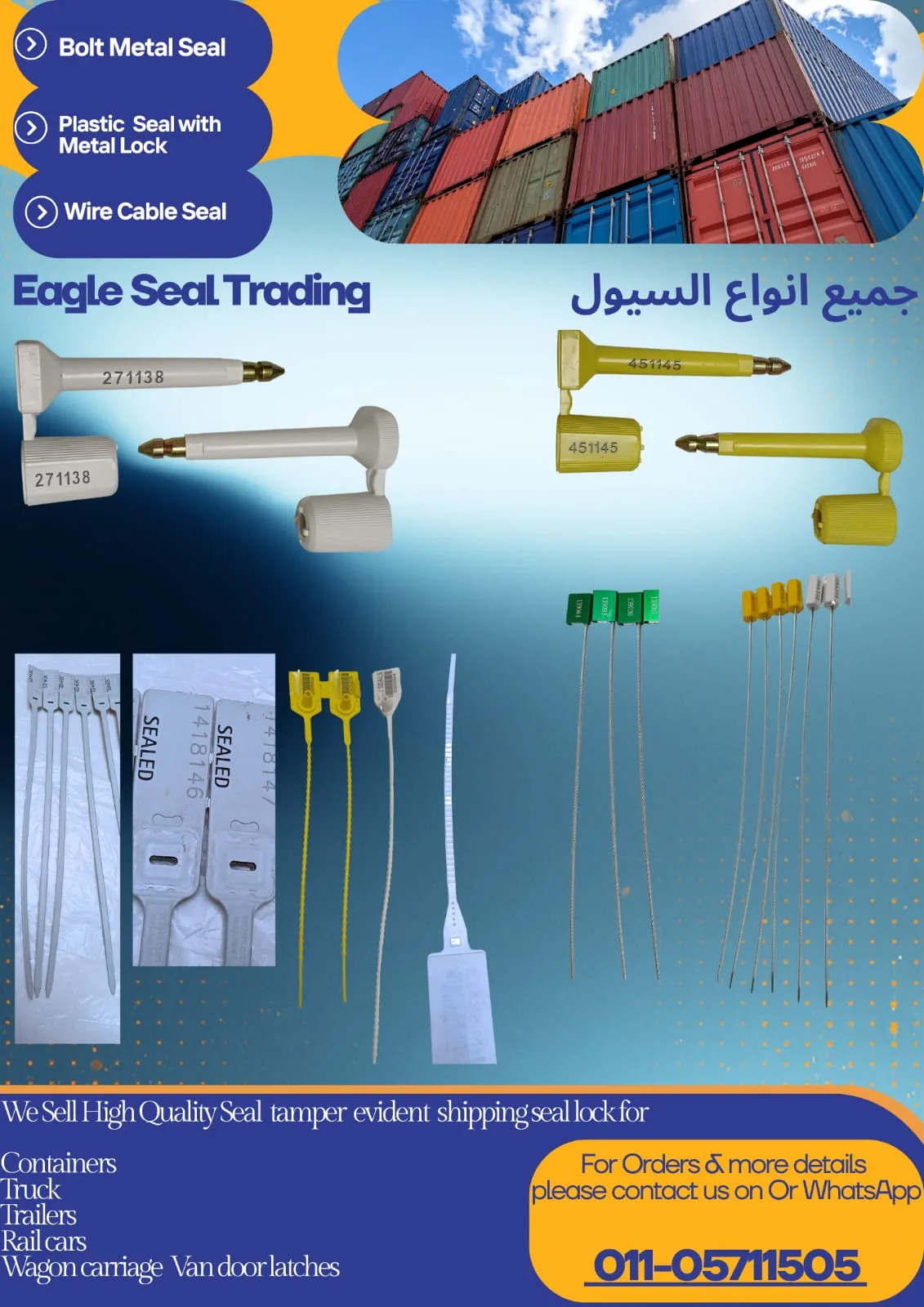 Sell all kind of container seals Bolt seal Plastic seal Wire cable seal Applicable for containers,trucks,trailers,etc…